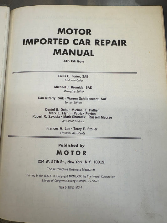 Motor Imported Car Repair Manual Professional Service Trade Edition