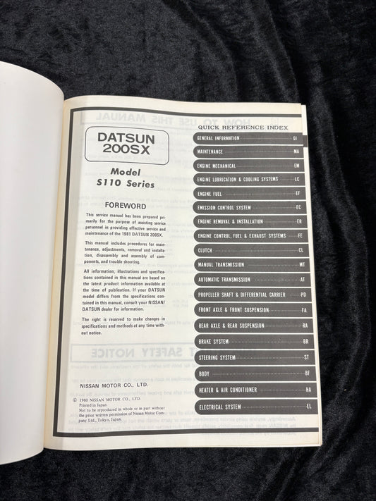 1981 Datsun 200 SX Service Manual