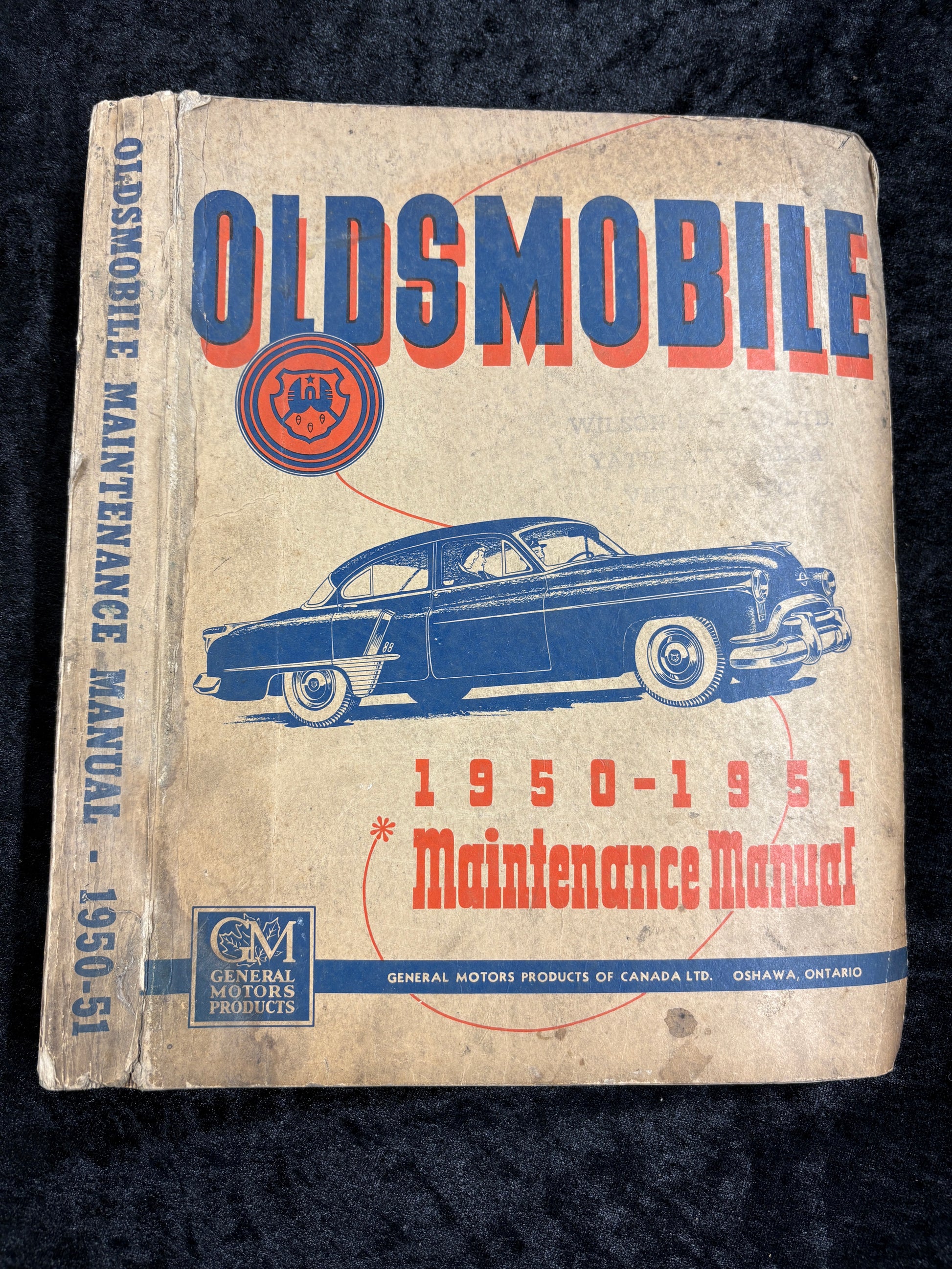 This is a rare copy of the Oldsmobile Maintenance Manual 1950/51, published by General Motors of Canada, Oshawa, Ontario. Black and white and colour illustrations. It was obviously well used, but there are no pages missing and it is still very useable.