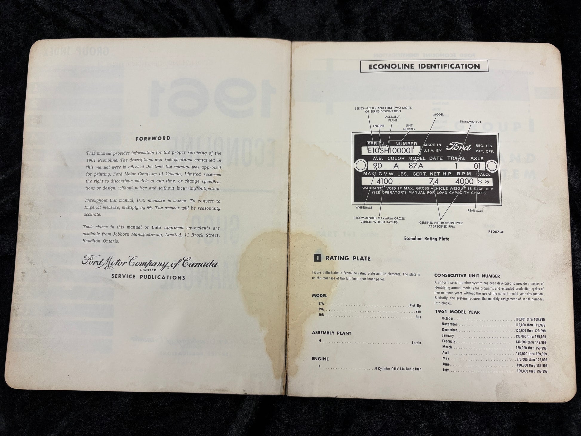 Ford Motor Co. of Canada Service Manual for the 1961 Econoline