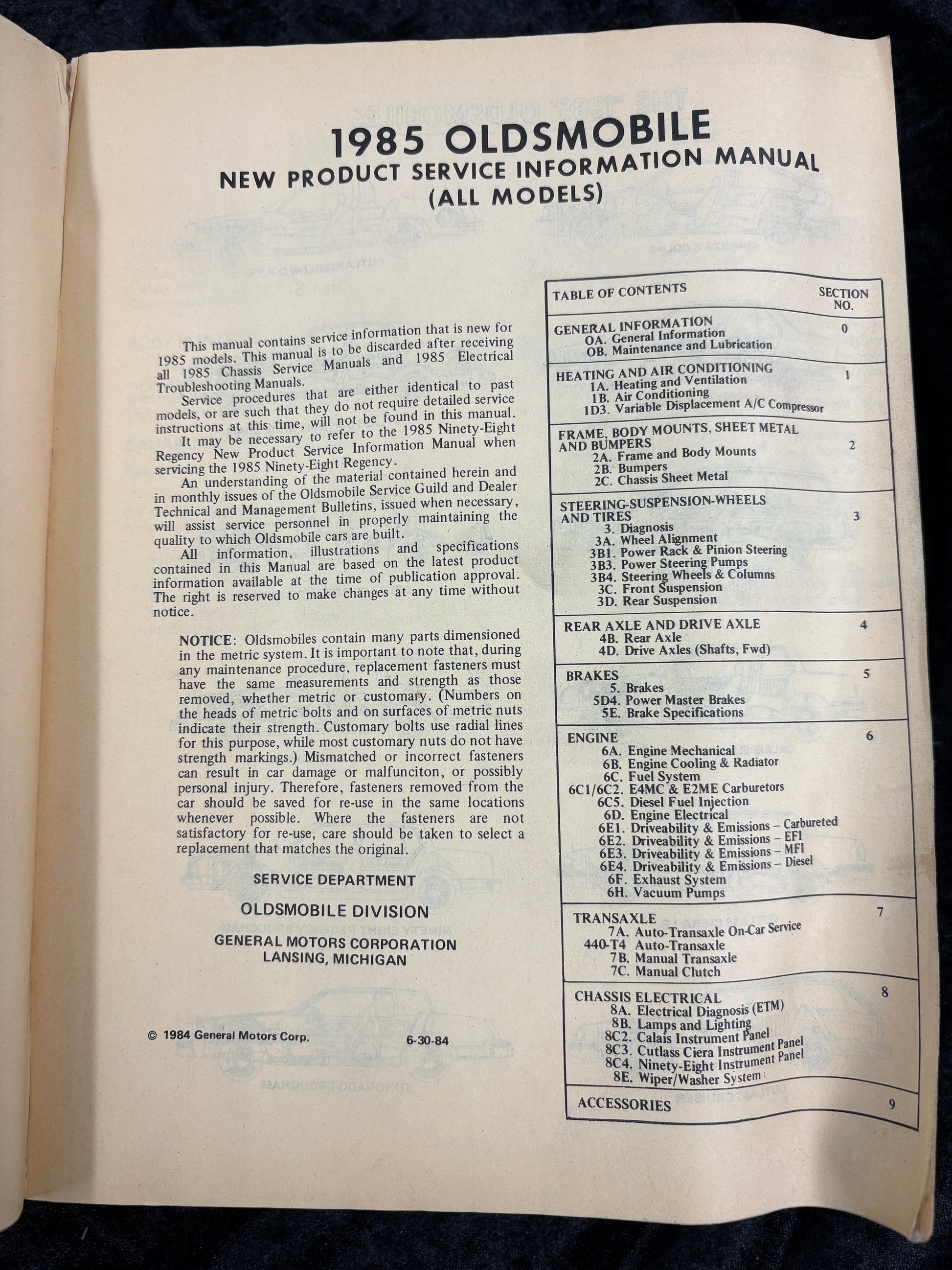 1985 Oldsmobile Models 3 Manual set