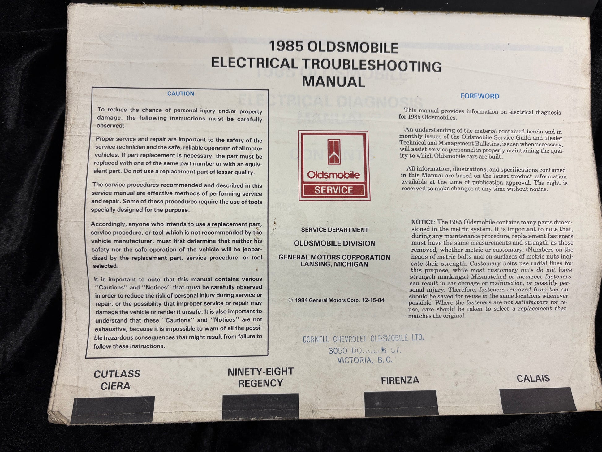 1985 Oldsmobile Service, Electrical 3 Book set