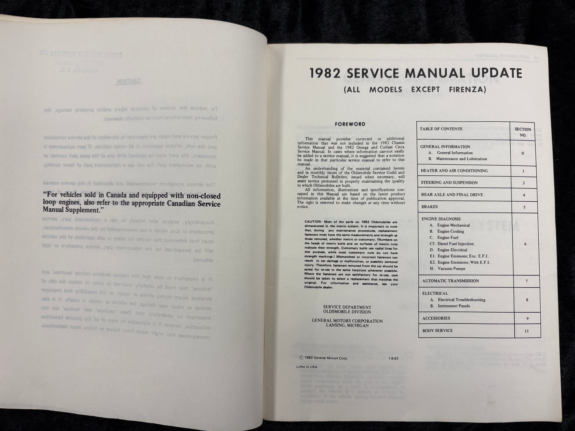 Also included a 1982 Service Manual up-date