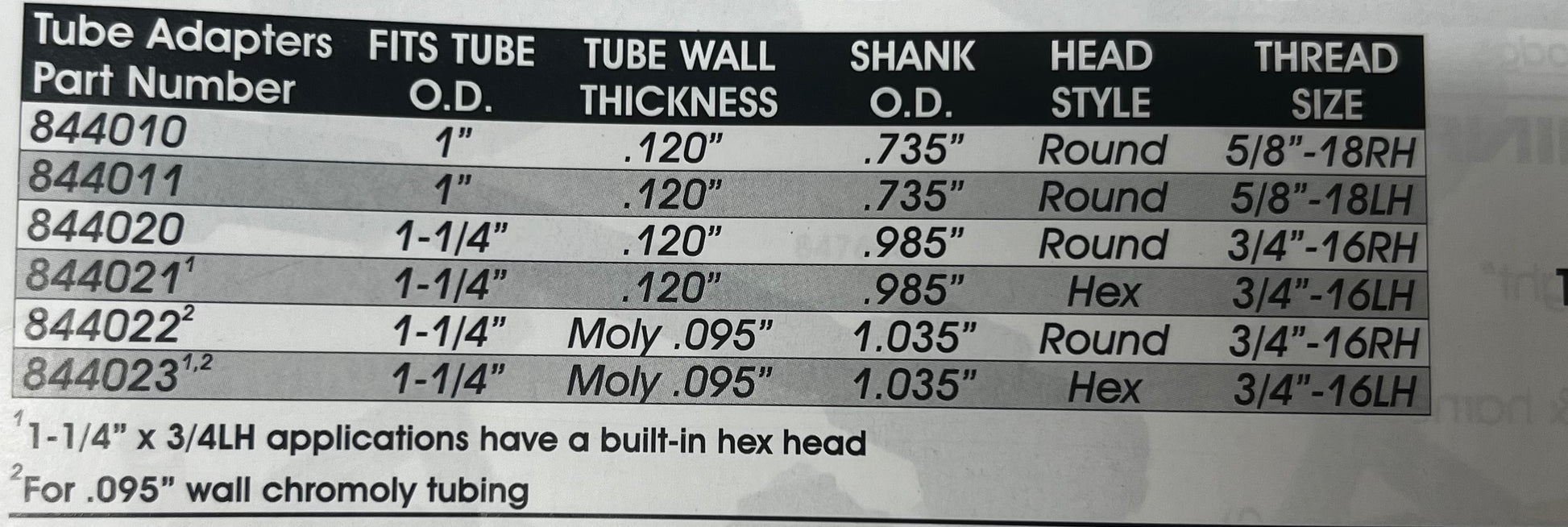 SAE 4130 Chromoly Tube Adapter. Fits 1.00" O.D. x .120" wall tubing. 5/8"-18RH