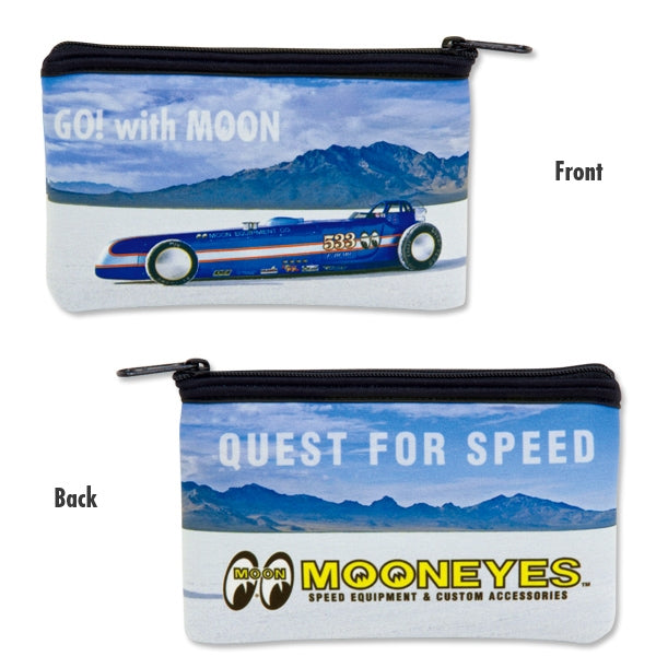 Front of the pouch, there is a picture of bonneville speed racing landscape with