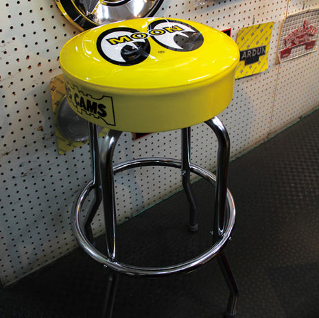 On the side MOON RACING CAMS logo printed on turning vinyl seat and chrome plated leg has beautiful combination. It will definitely stand out in your garage.