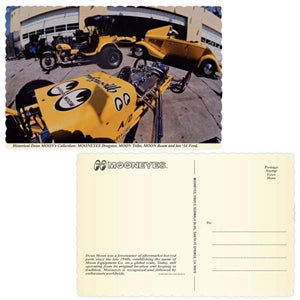 Official MOONEYES USA Postcard featuring a classic shot of the MOON Garage (Machine Shop) and "toys".
