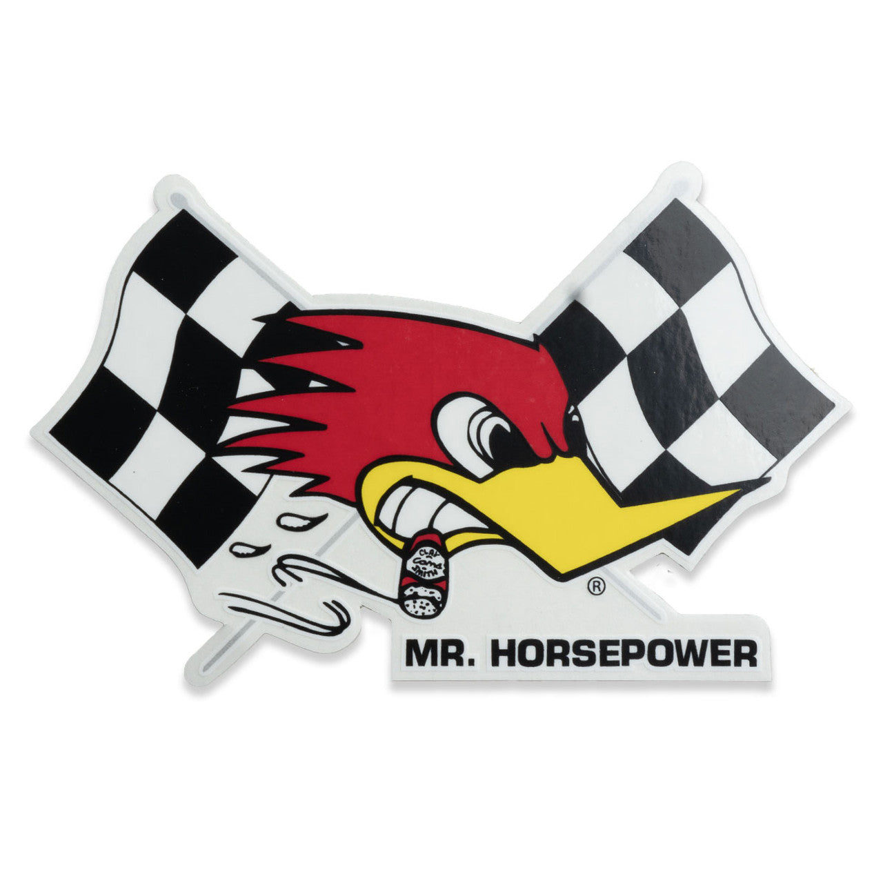 Mr. Horsepower with Checkered Finish Line Flags - Sticker